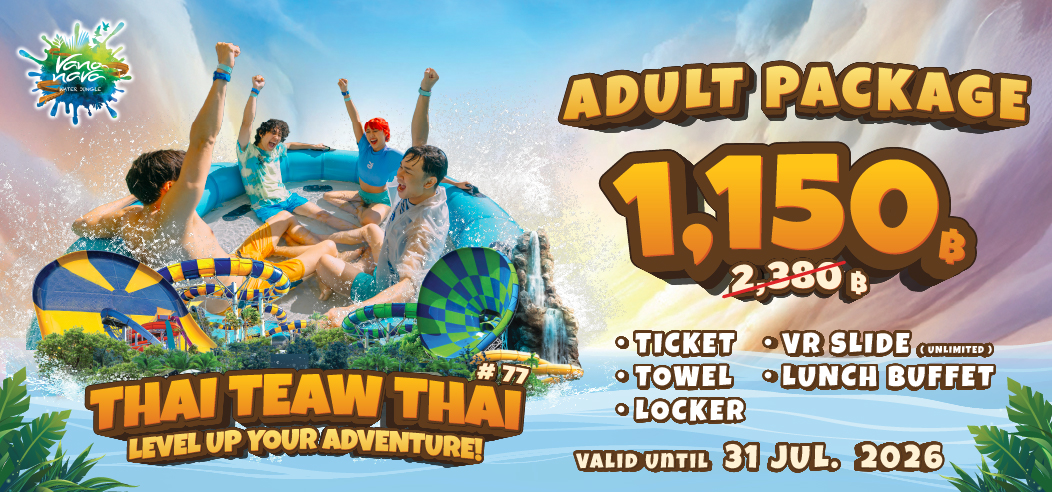 Normal Price THB 2,380Enjoy unlimited rides, towel, locker, lunch buffet, and the exciting VR Slide. The ultimate day of fun and value—just for you!